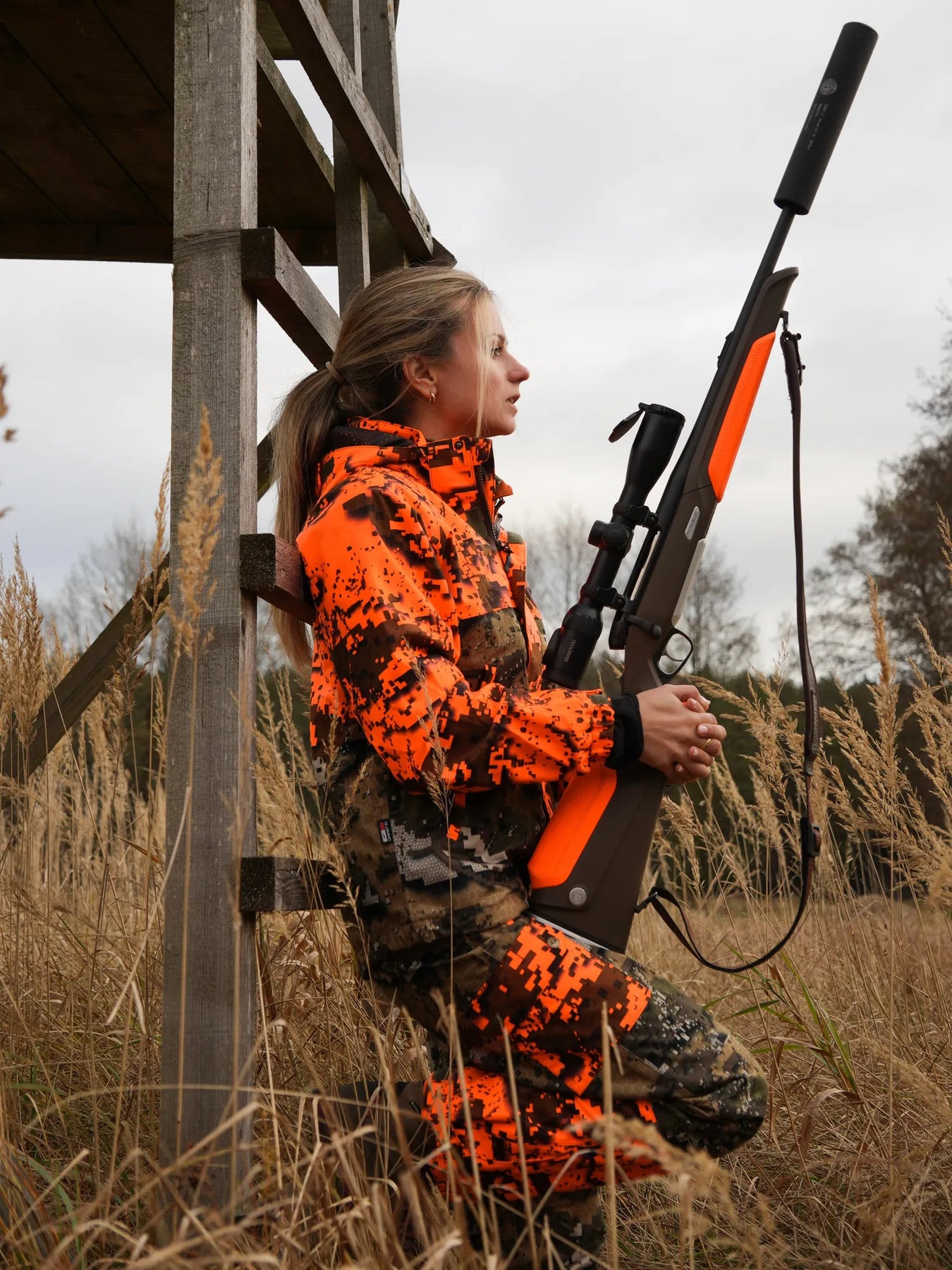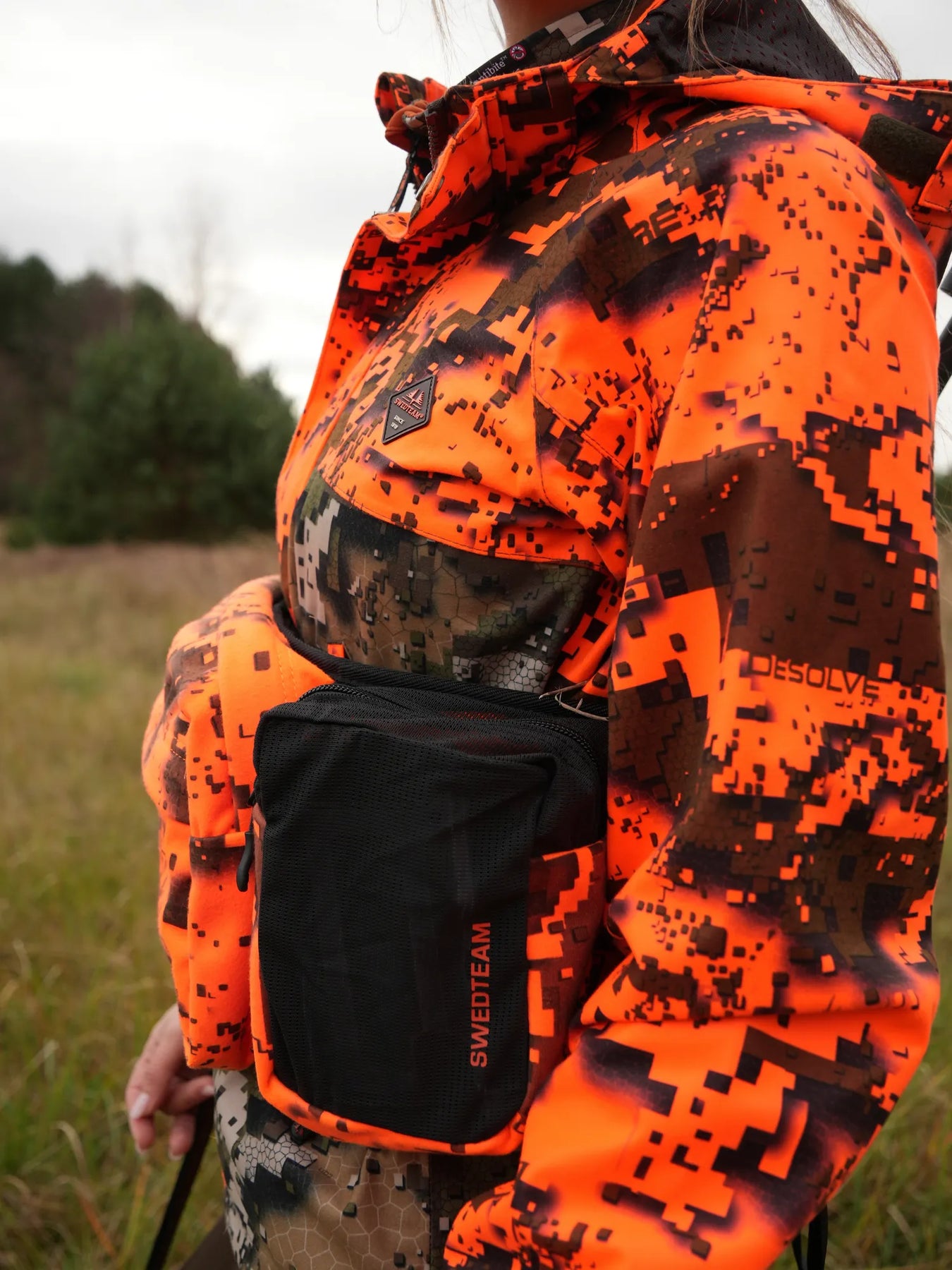 The jacket has several practical pockets, including radio pockets and a large back pocket, where you can fit everything you need during the hunt. It works just as well for active days as for quiet moments on the pass.