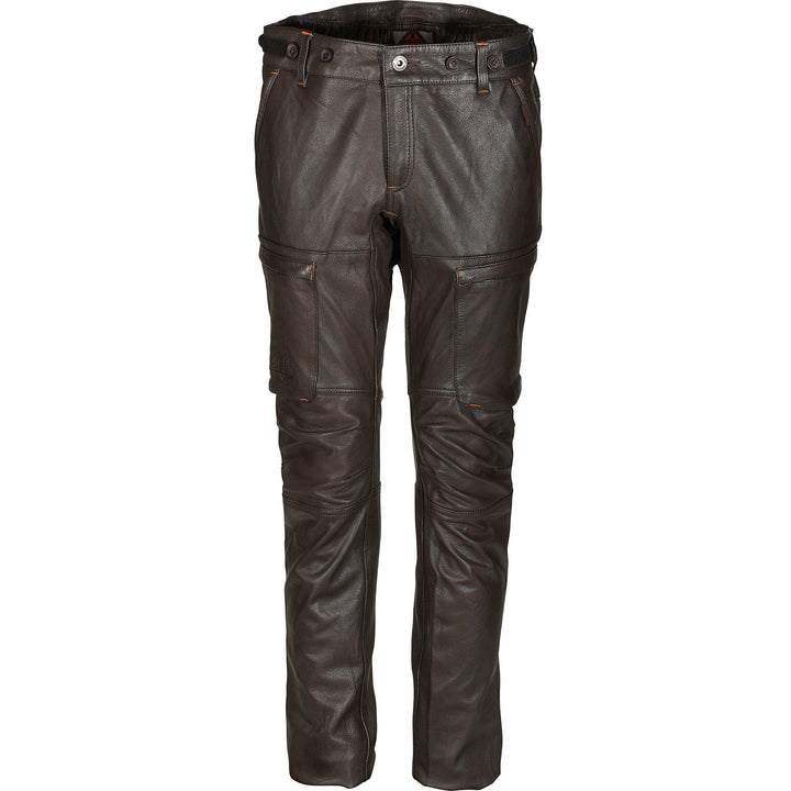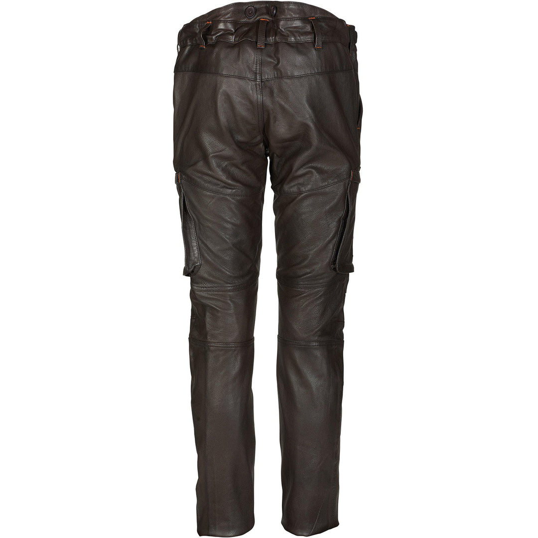 Leather hunting trousers with a new cut. It is based on one of our technical hunting pants. Adjustable waist and pre-curved knees are some of the features. Two spacious leg pockets with a new shape. The legs are extra long, which can be easily adjusted to the right length.
