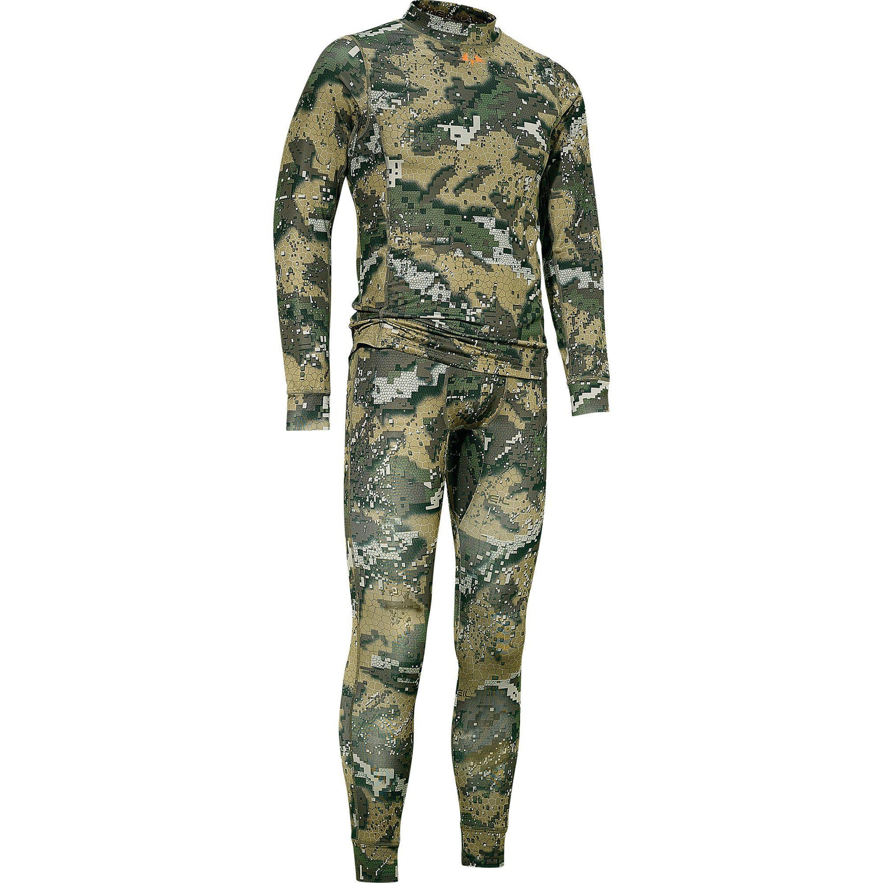 Pull à col rond avec une coupe ajustée pour être porté le plus près possible du corps. Caleçon long avec ceinture haute pour éviter qu'il ne glisse dans le dos. Fabriqué avec le motif camouflage unique DESOLVE® Veil.