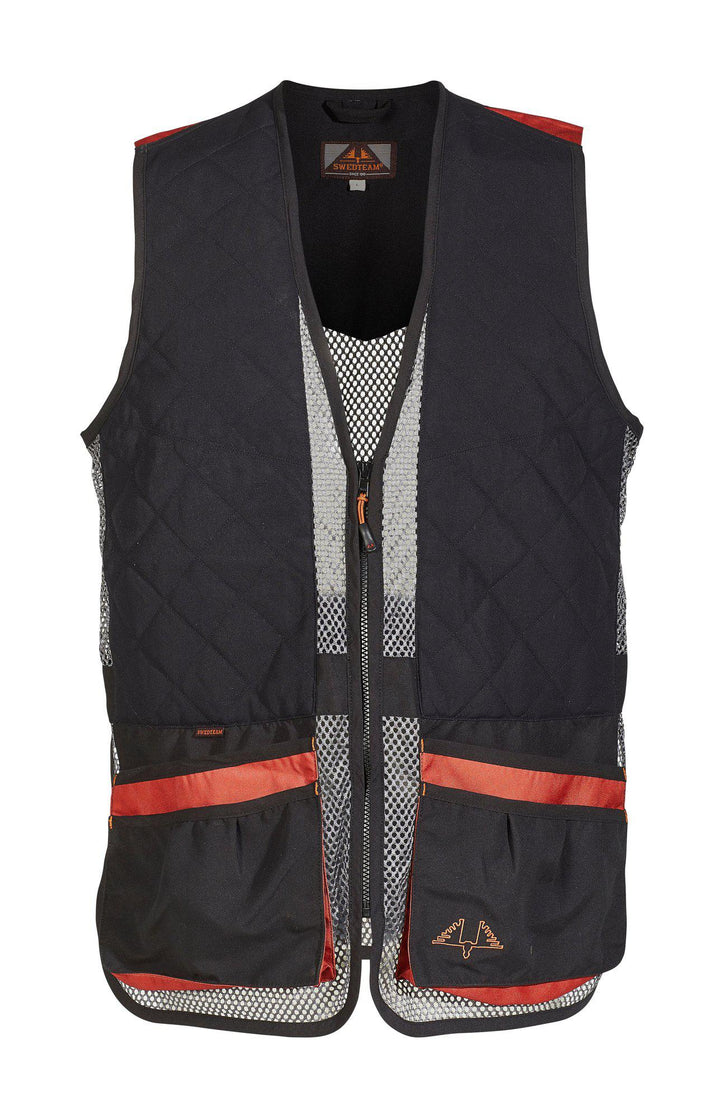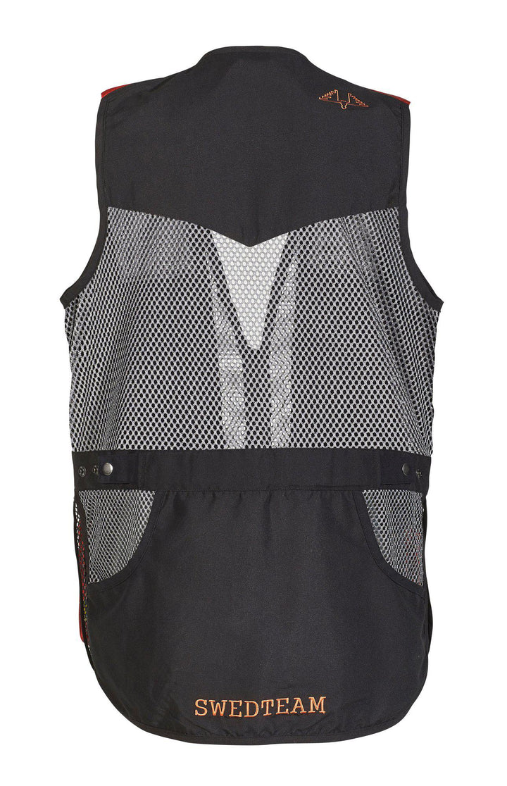 Skytevest med luftige nettingpaneler. Avtakbar polstring foran. Romslige lommer foran og stor baklomme. Komfortabel passform og justerbar midje.